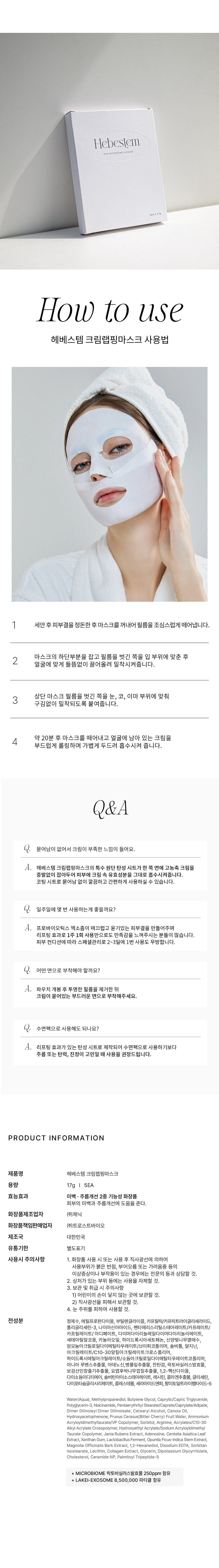 유산균+엑소좀이 성분의 크림 마스크로