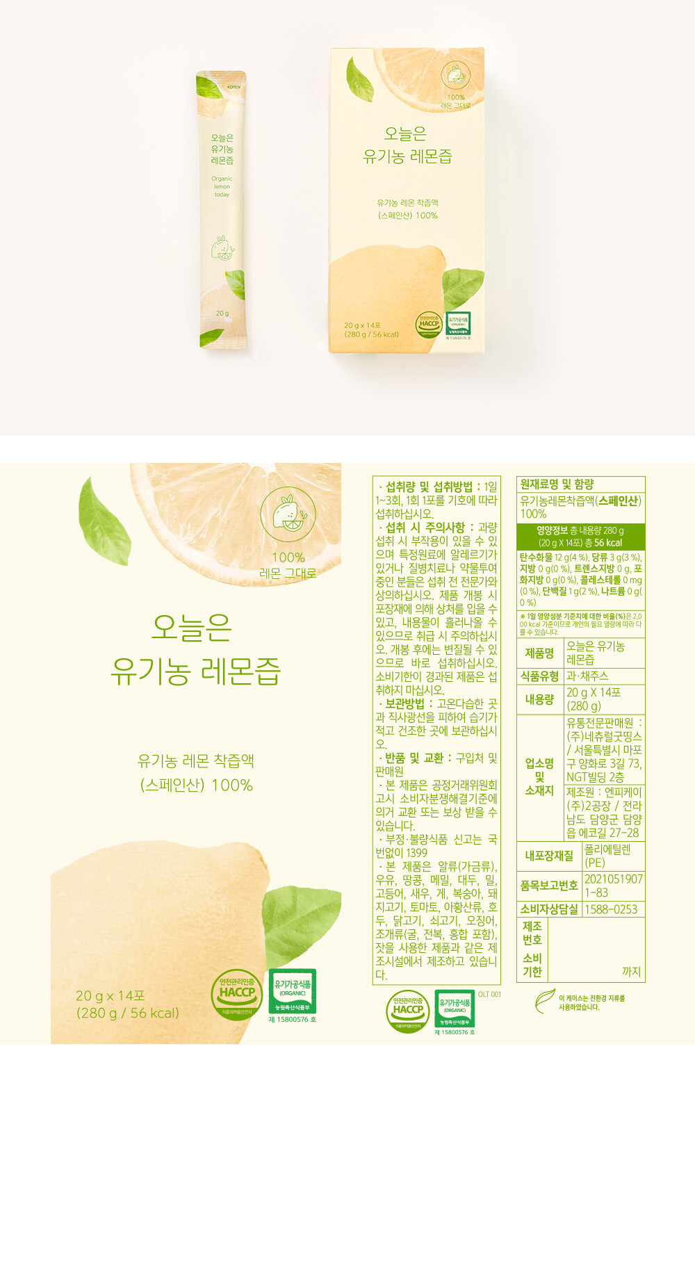 오늘은 유기농 레몬즙 1box (14포 )