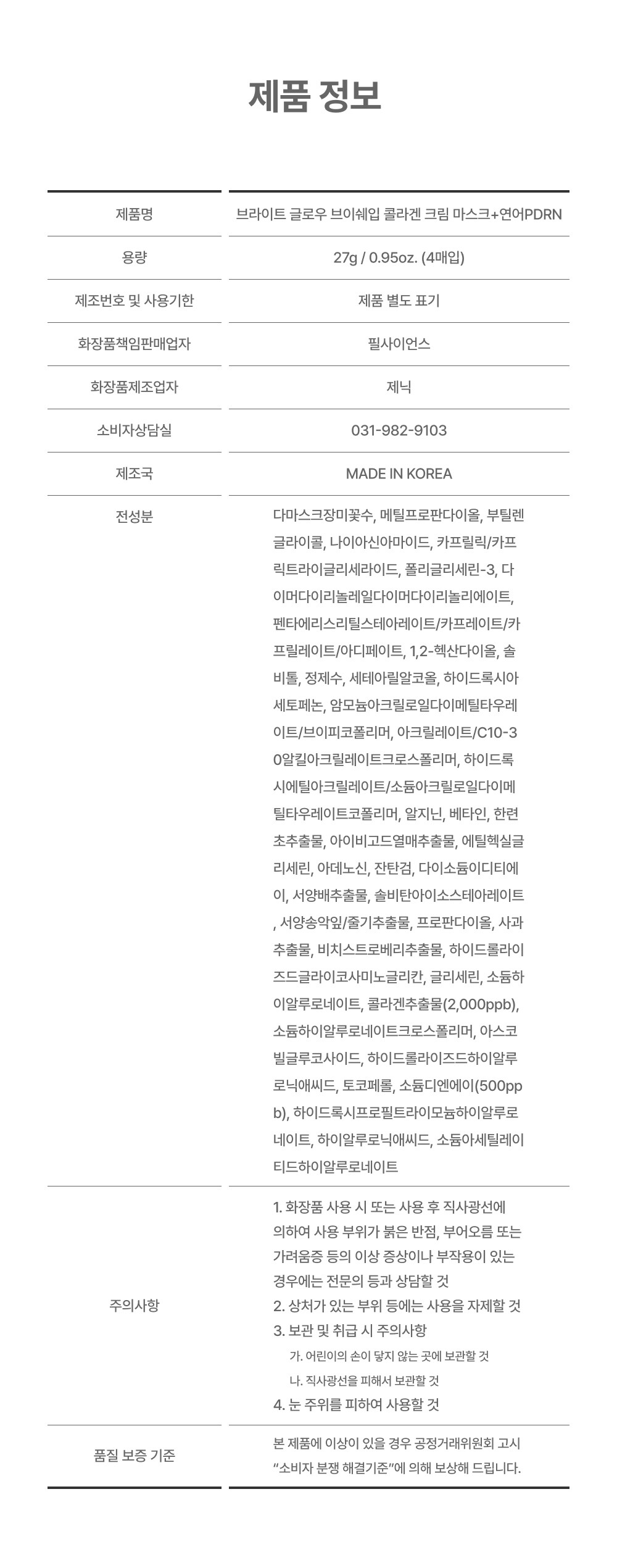 글로우썸 PDRN 콜라겐 크림 마스크 1box(4ea)