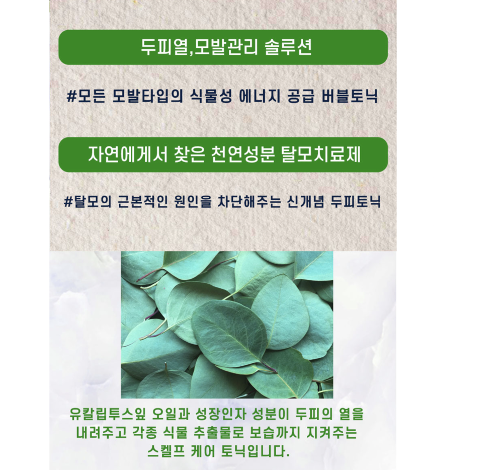 유칼립투스잎 오일과 성장인자 성분이 두피에스파클링 탄산으로 인해서