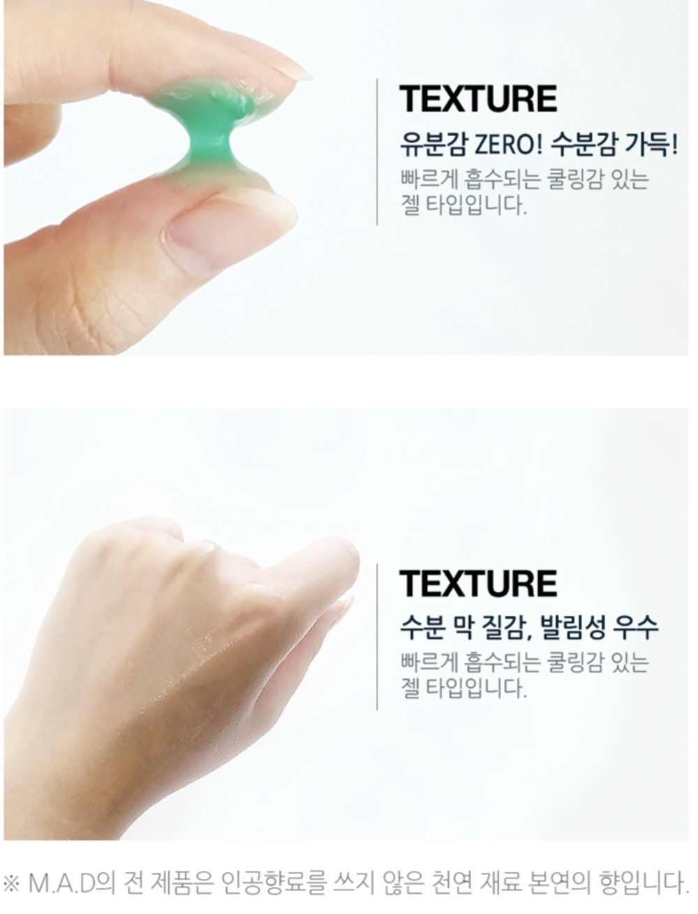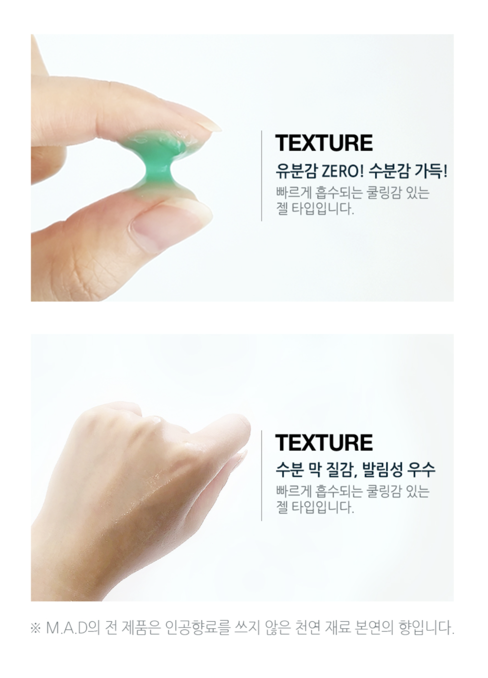빠르게 흡수되어 피부에 쿨링감을 주는 젤타입 !!